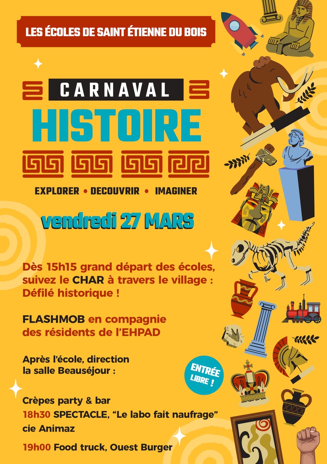 Nous vous donnons rendez-vous le vendredi 27 mars à partir de 15h15 pour célébrer le carnaval tous ensemble !