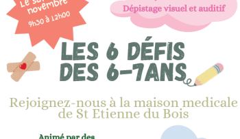 Dans le cadre d’une action de prévention, la Maison de Santé de Saint Etienne du Bois, vous propose une matinée ludique, pédagogique et GRATUITE à destination des enfants de 6 à 7 ans (CP/ CE1), en lien avec leur bien être et leur santé.