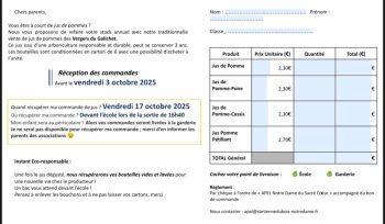 —- BREAKING NEWS : les pommes se transforment en voyage scolaire —- Oui, oui… Grâce à vous, chaque gorgée de jus de pomme devient un pas vers les sorties et aventures de fin d’année pour nos élèves.