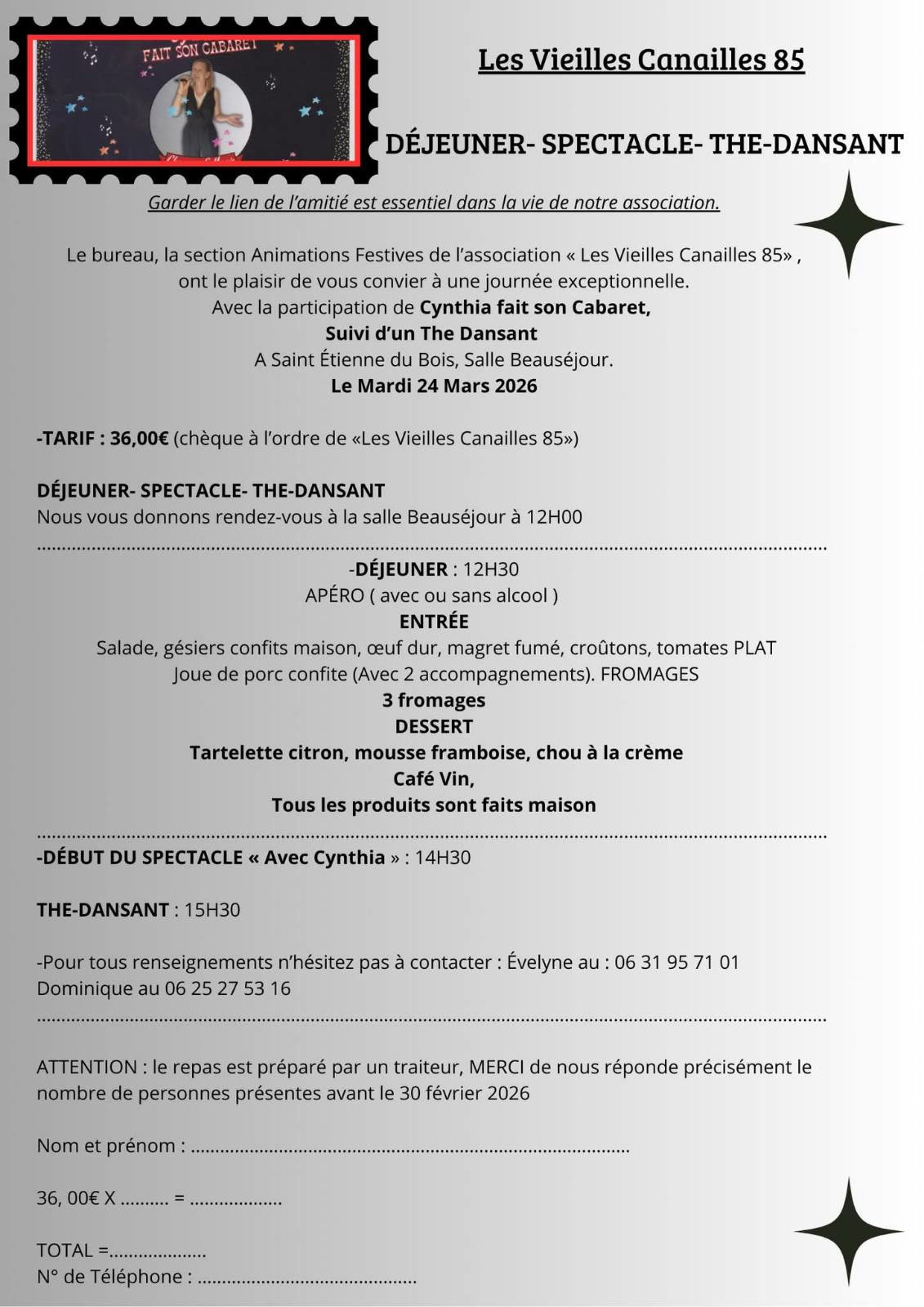 Déjeuner spectacle/ Thé Dansant (DJ) – Les Vieilles Canailles 85