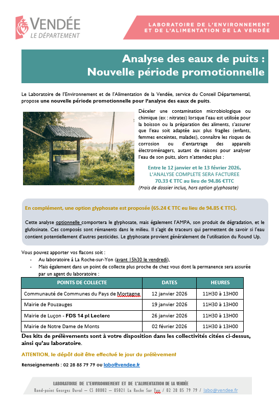 Département de la Vendée : Analyse des eaux de puits
