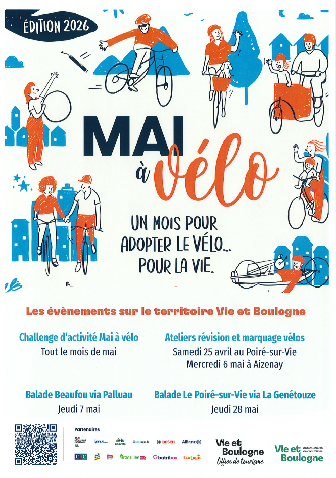 Balades vélos organisées par l’association Sports et Loisirs Séniors du Poiré-sur-Vie, ateliers vélos organisés par la Communauté de communes et l’Office de Tourisme Vie et Boulogne en partenariat avec les réparateurs vélo : AD Cycles et Cycles O’Vent.