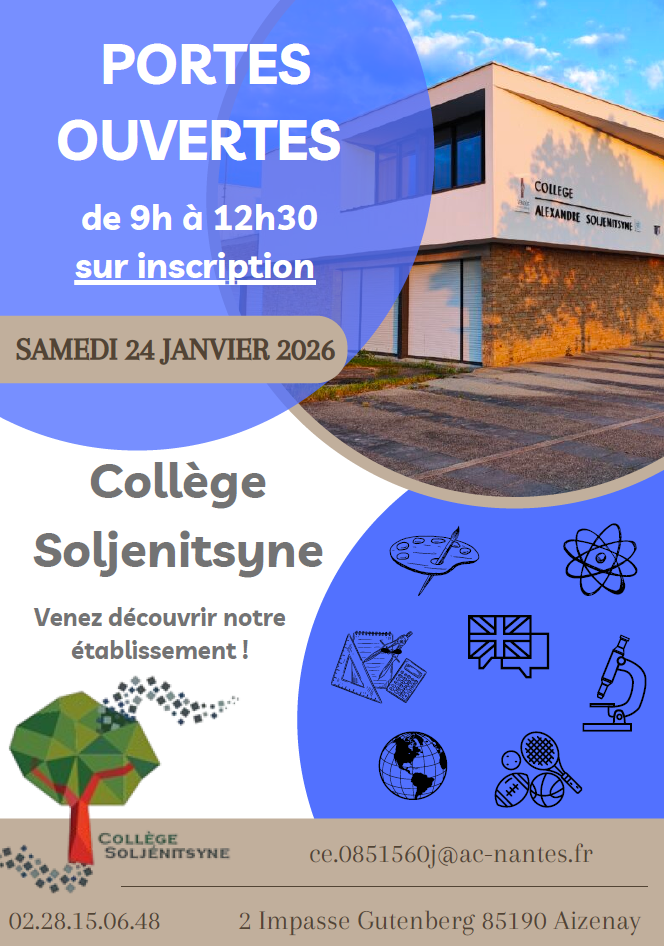Une date à retenir pour les Portes Ouvertes du collège Alexandre Soljenitsyne d’Aizenay :