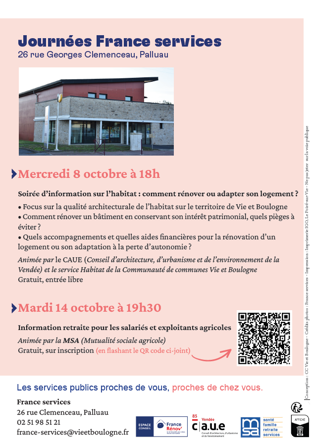 Gratuit, entrée libre • France services, 26 rue Georges Clemenceau, 85670 Palluau